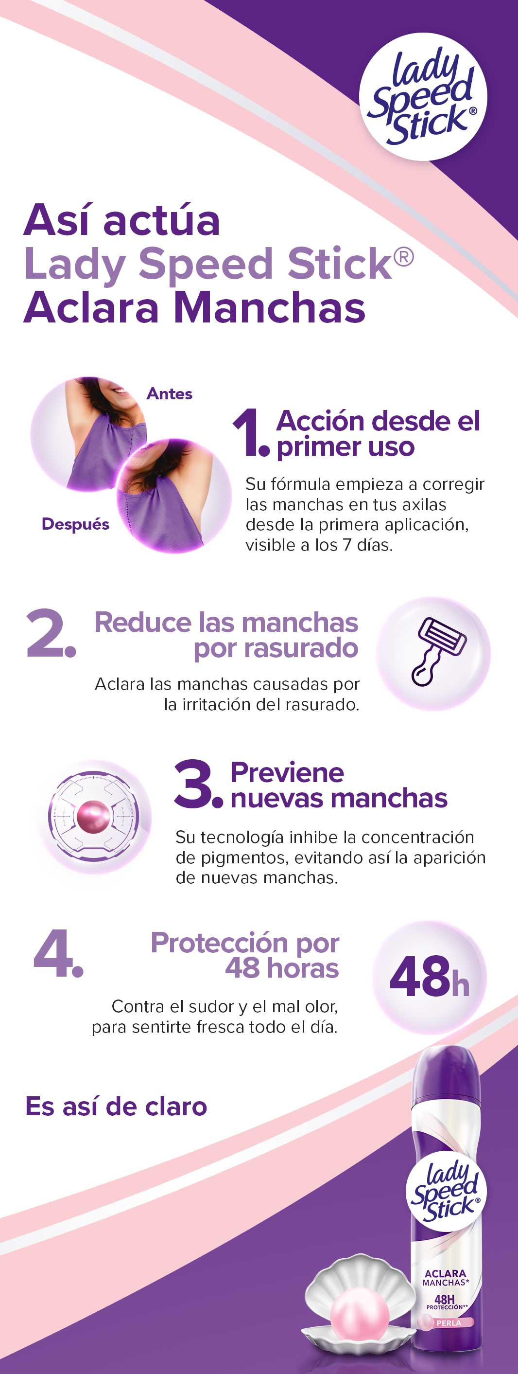 Lady Speed Stick® Aclara Manchas Nácar en aerosol
